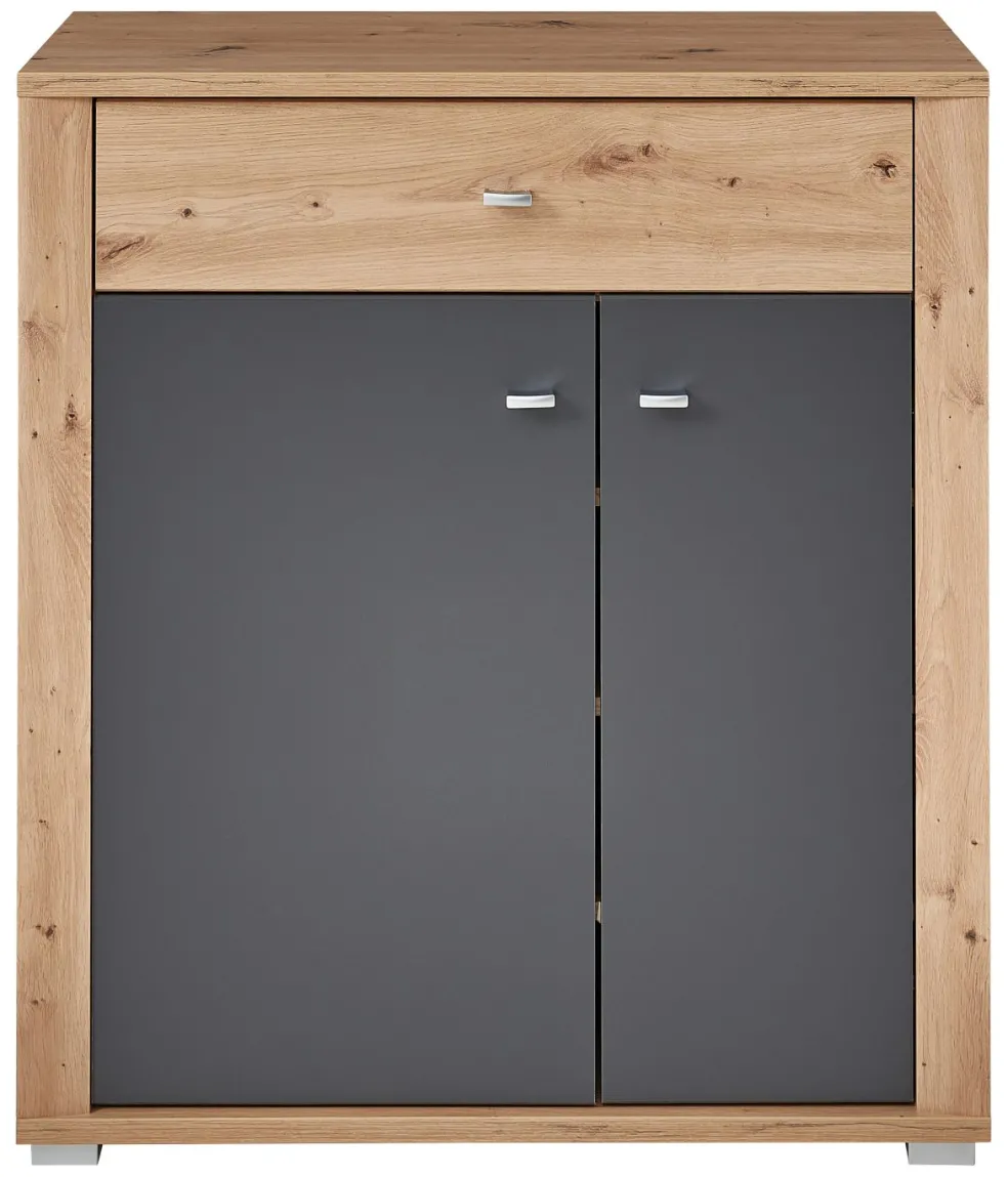 Façade: mélaminé ton graphite avec contrastes décor chêne Artisan