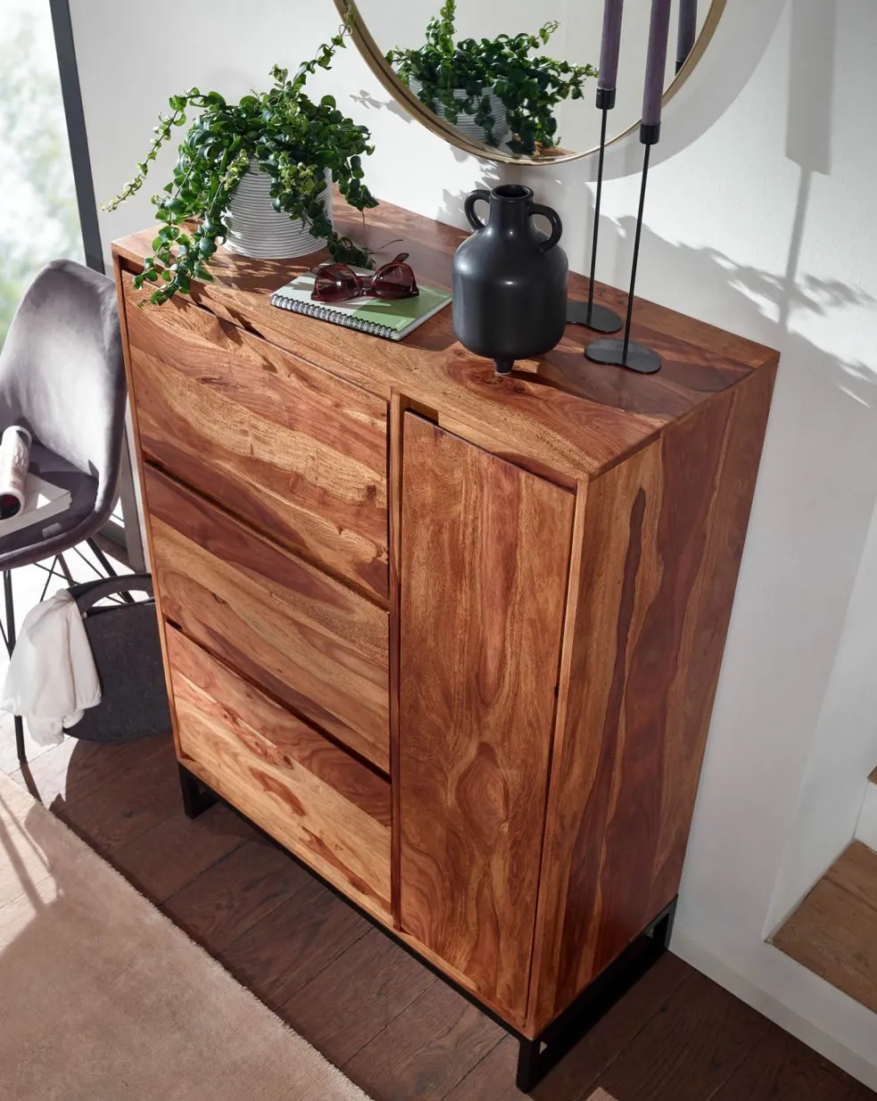 Caisson: bois de sheesham massif (Inde)