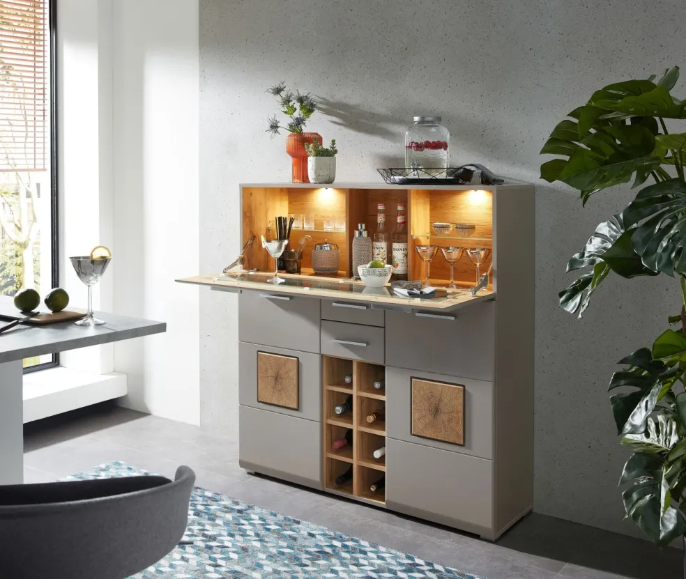 | Équipement Commodes Phono Bureau Étagère: | Abattant(s), Portes, Tiroirs, incl. éclairage | ||