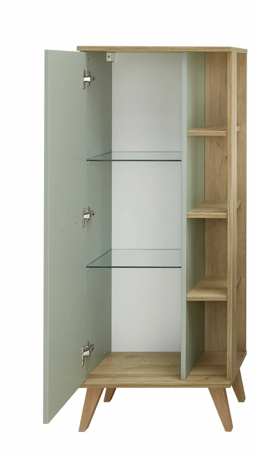 1 porte battante avec, derrière elle, 2tablettes en verre