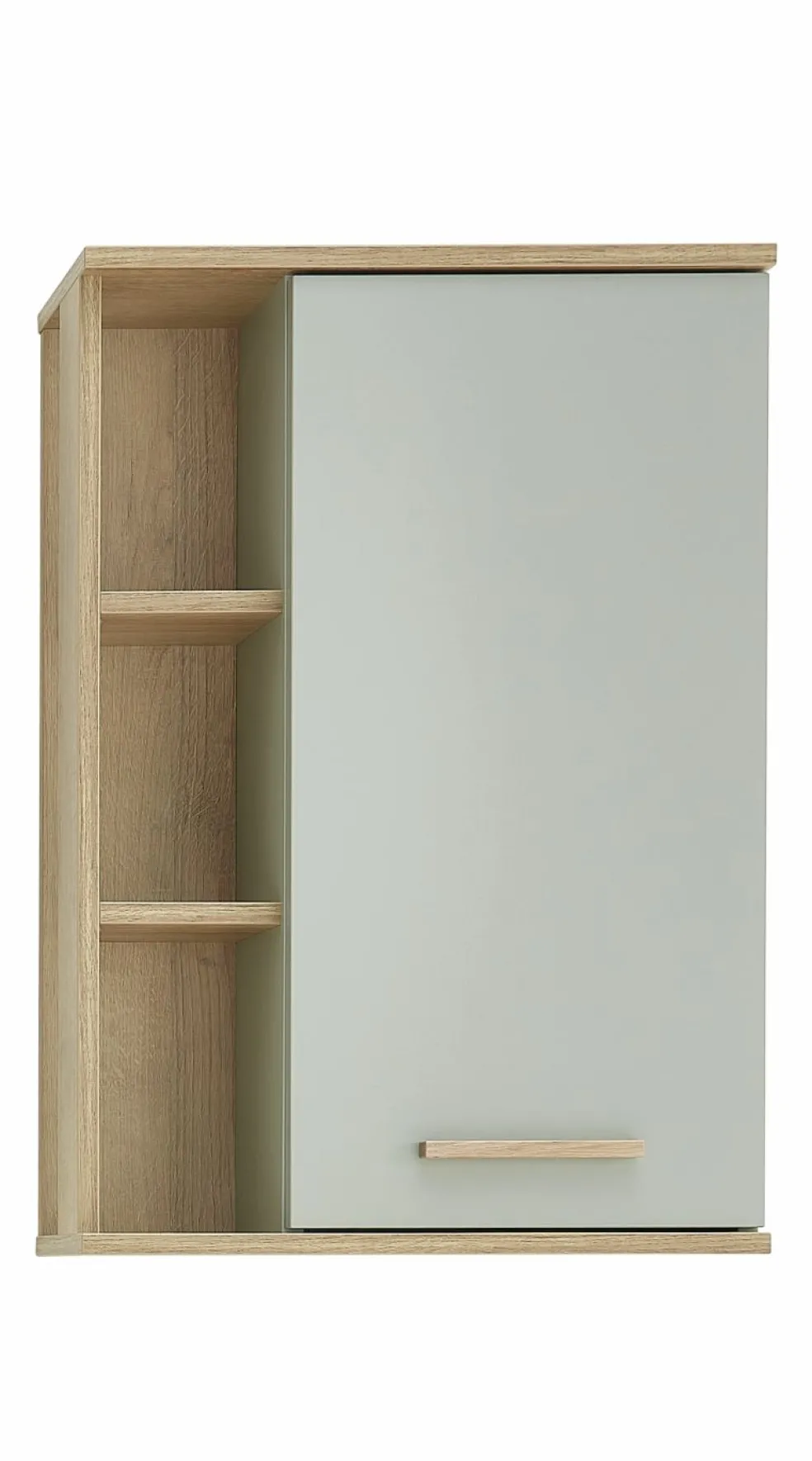 1 porte battante avec, derrière elle, 2 tablettes en verre
