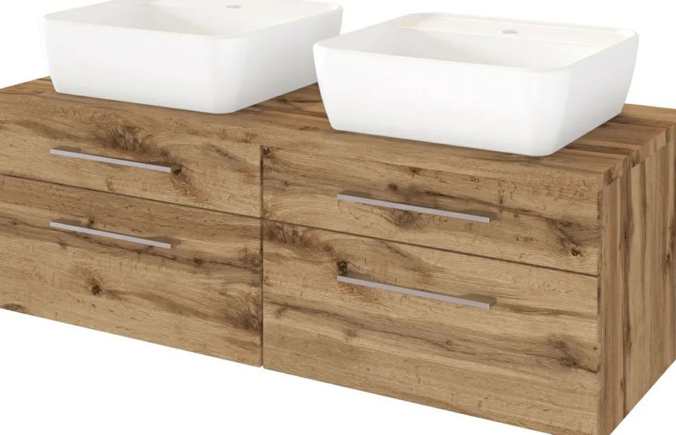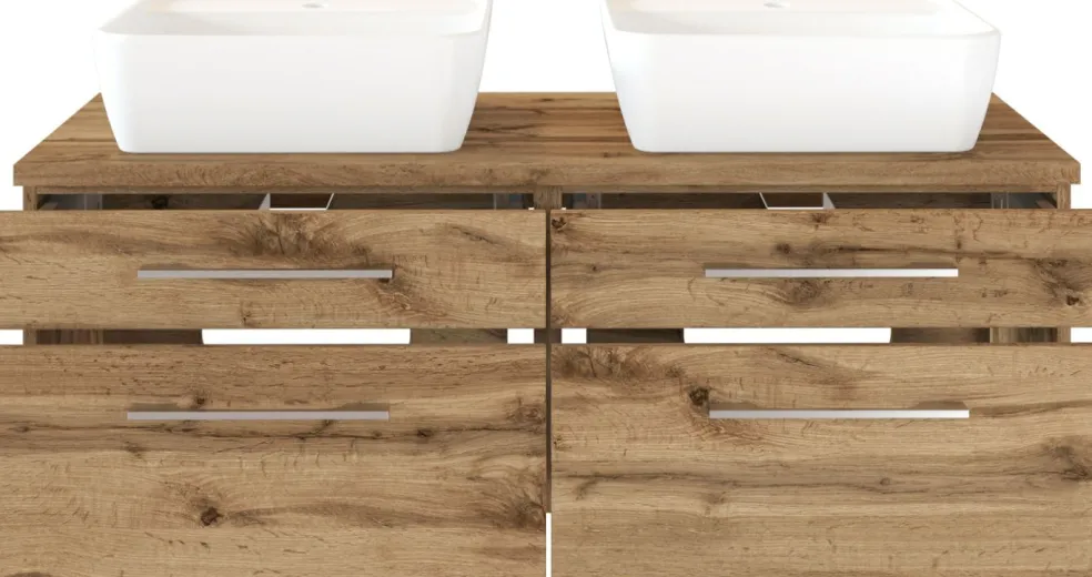 1 meuble sous vasque avec 2 tiroirs bas et 2 tiroirs hauts avec fermeture amortie, incl. découpe siphon