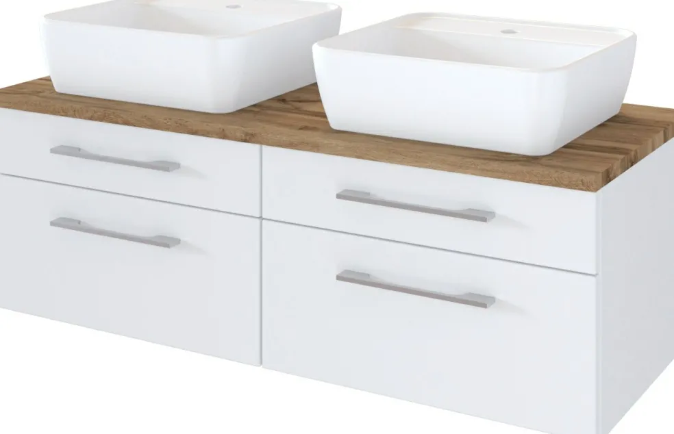 1 meuble sous vasque avec 2 tiroirs bas et 2 tiroirs hauts avec fermeture amortie, incl. découpe siphon