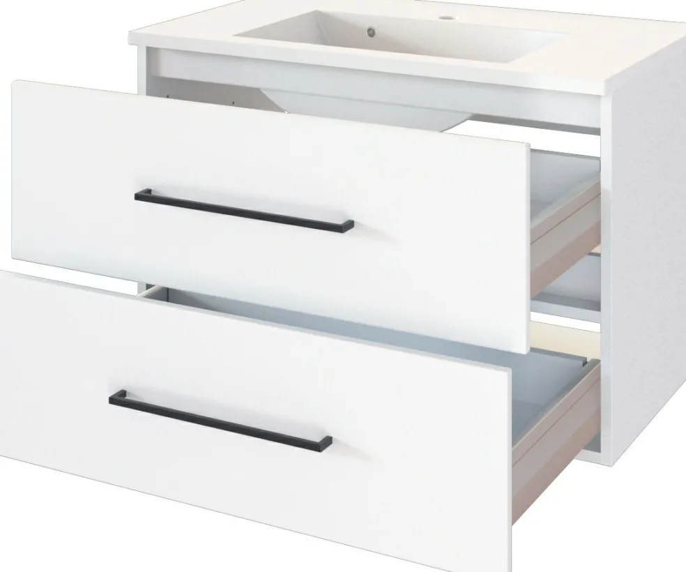1 meuble sous vasque avec 2 tiroirs en métal à sortie totale avec fermeture amortie