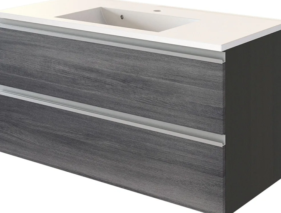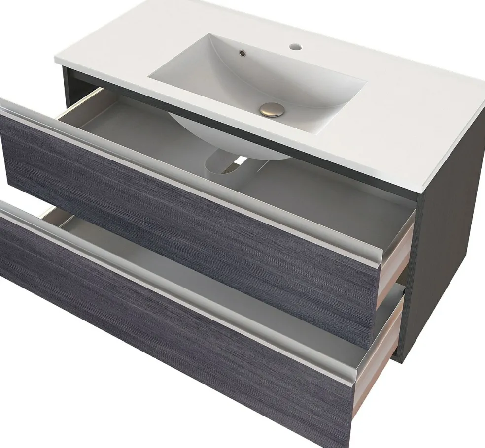 1 meuble sous vasque avec 2 tiroirs sur rails métalliques à fermeture amortie