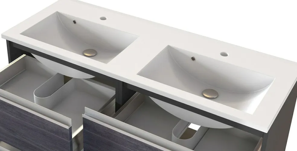 1 meuble sous vasque avec 4tiroirs sur rails métalliques à fermeture amortie