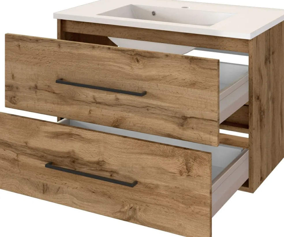 1 meuble sous vasque avec 2 tiroirs en métal à sortie totale avec fermeture amortie
