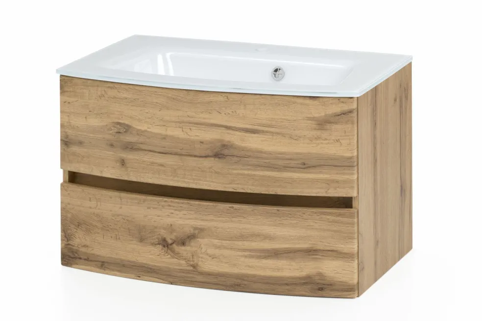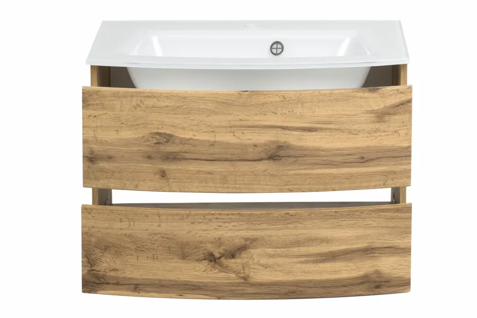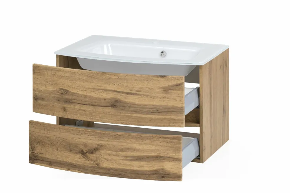 1 meuble sous vasque avec 2 tiroirs en métal à sortie totale avec fermeture amortie, façades arrondies