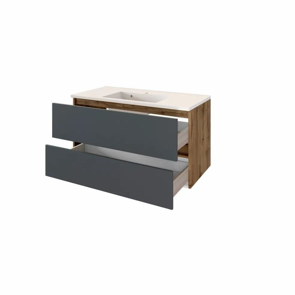 1 meuble sous vasque avec 2 tiroirs en métal avec fermeture amortie, sans poignées