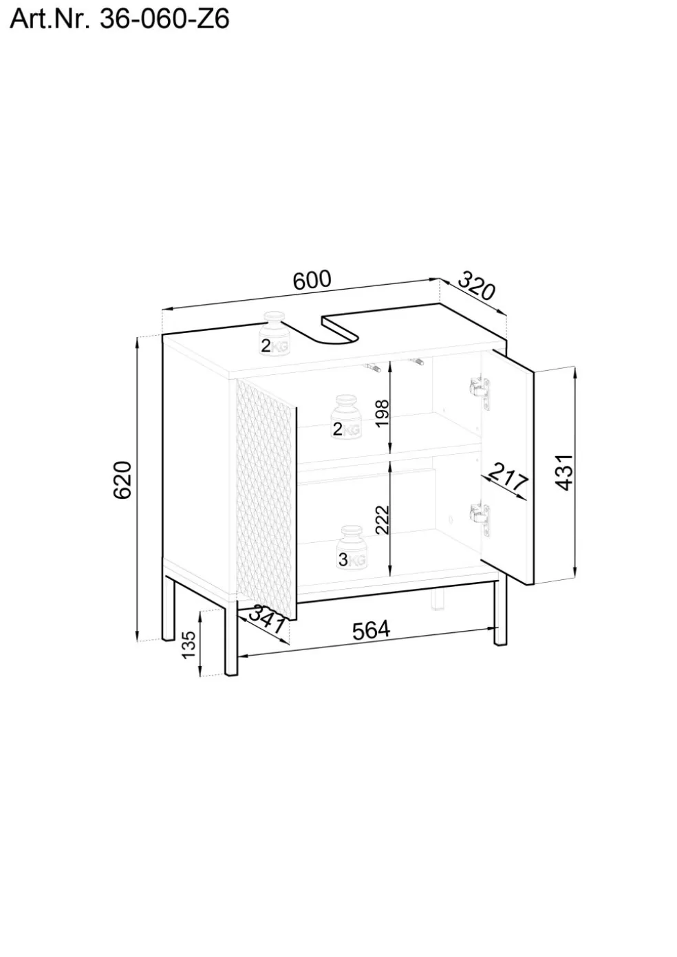 | Meuble sous vasque | 60 | 62 | 32 |