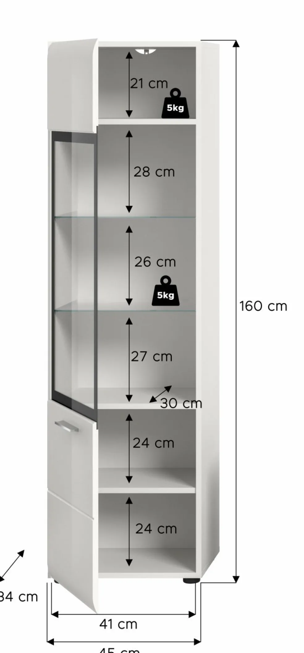 | Meuble vitrine | 45 | 160 | 34 |