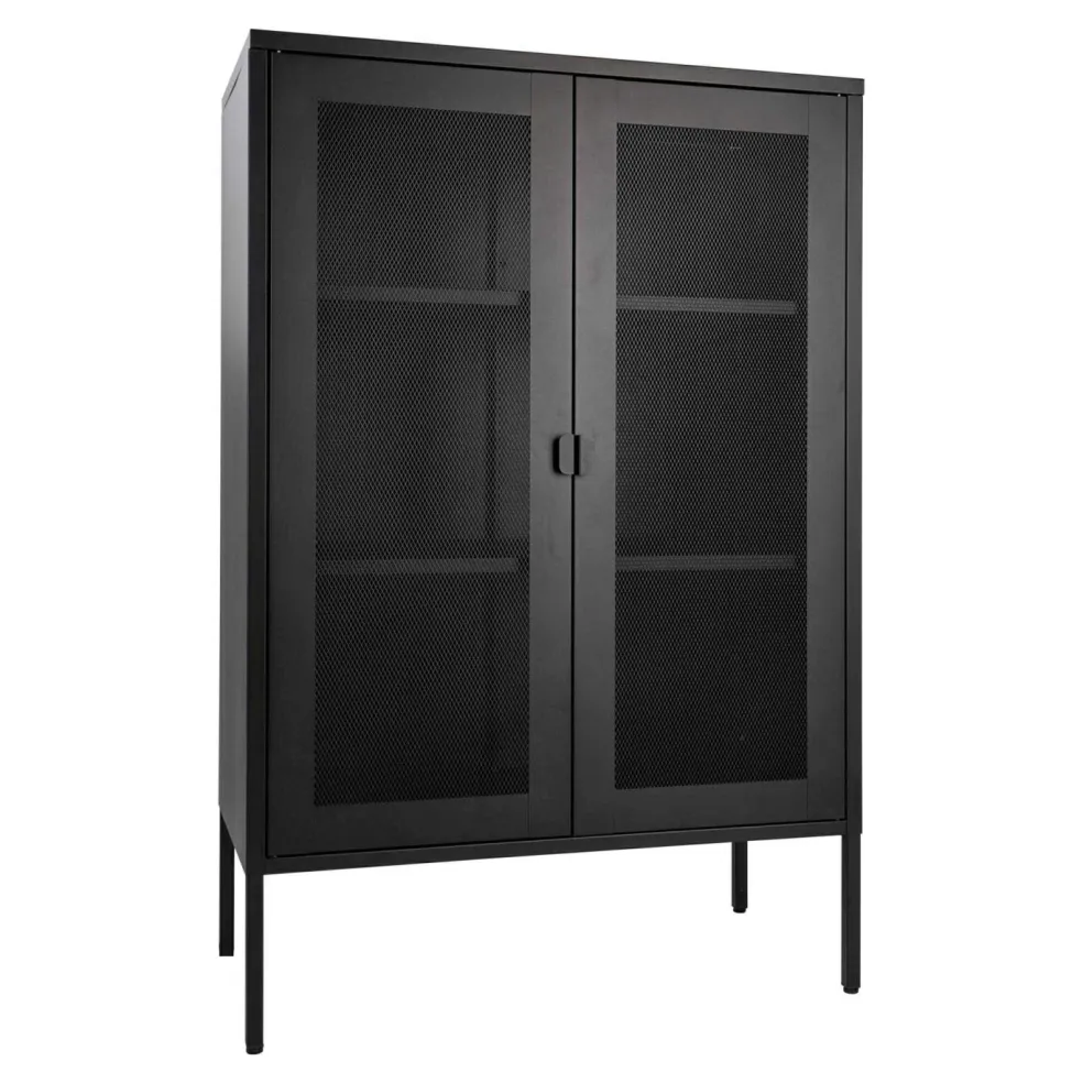 Façade: acier ton noir avec portes aspect résille