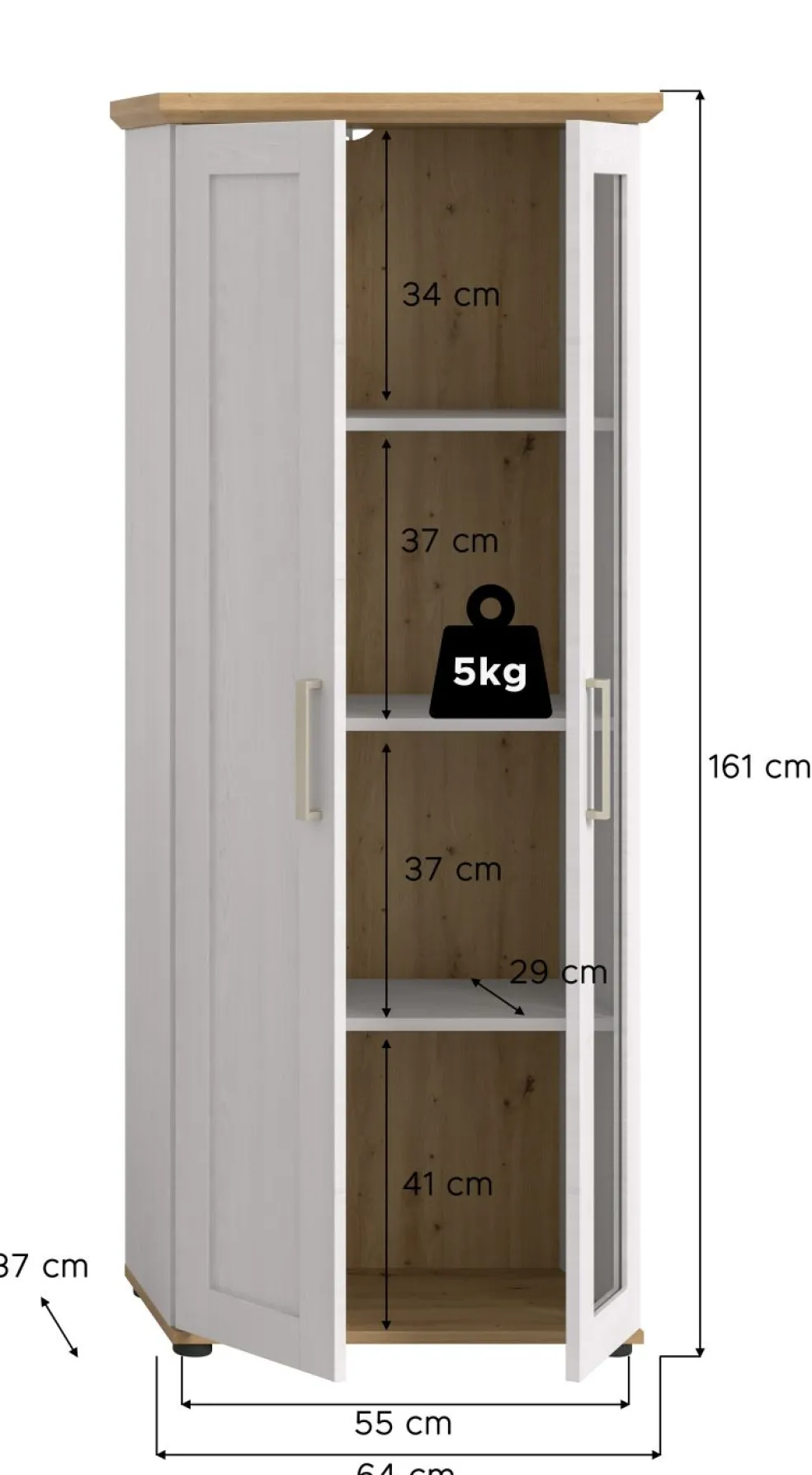 | Dimensions : | L/H/P env. 64/161/37 cm | ||