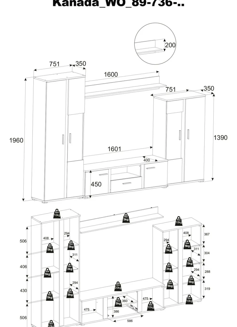 | Type de mur d’habitation: | Mur TV | ||