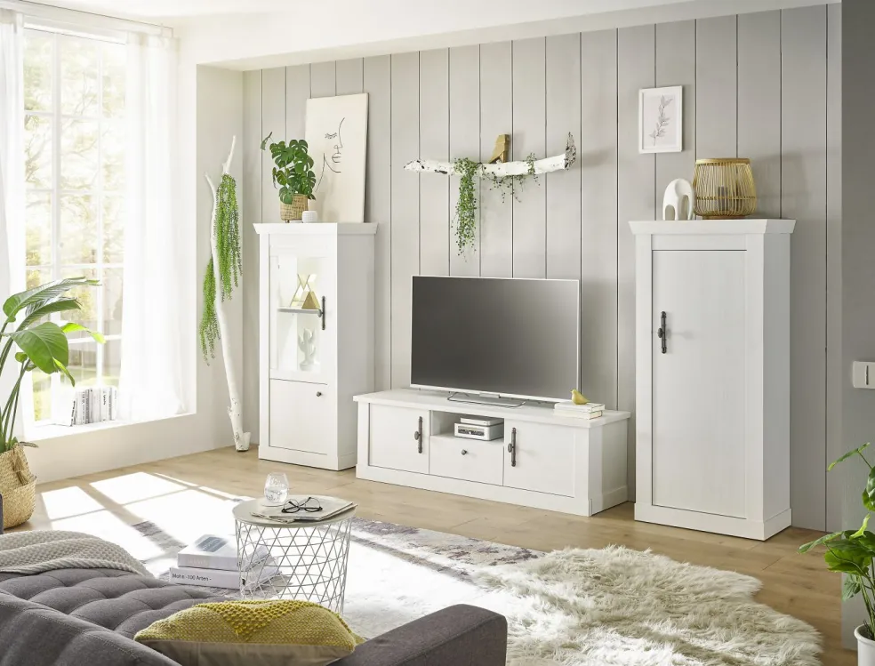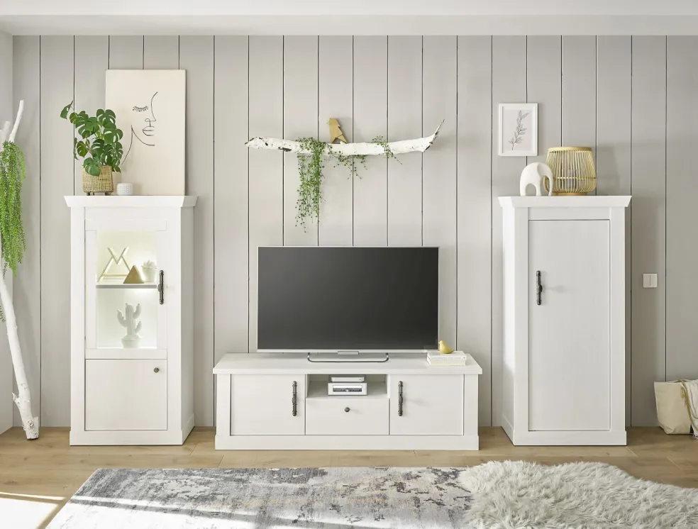1 banc TV avec 2 portes, 1 tiroir, 1 casier pour l’équipement et 1 passe-câble