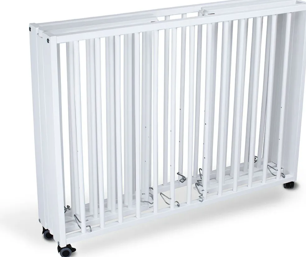 Grâce au mécanisme rabattable, le parc pour bébé peut être déplié facilement sans outil, puis replié et rangé sur le côté pour un faible encombrement.