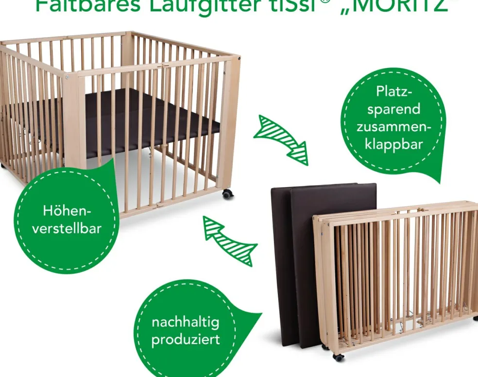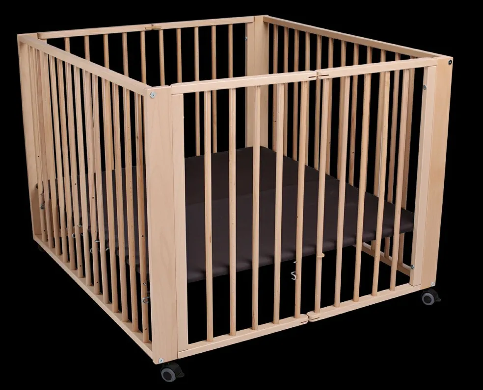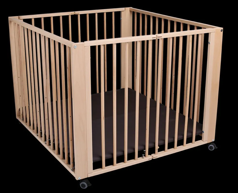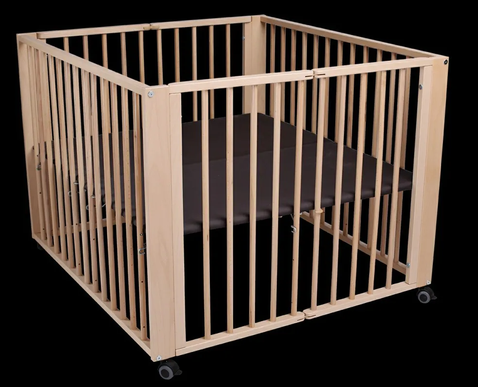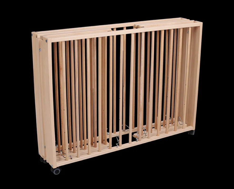 Grâce au mécanisme rabattable, le parc pour bébé peut être déplié facilement sans outil, puis replié et rangé sur le côté pour un faible encombrement.