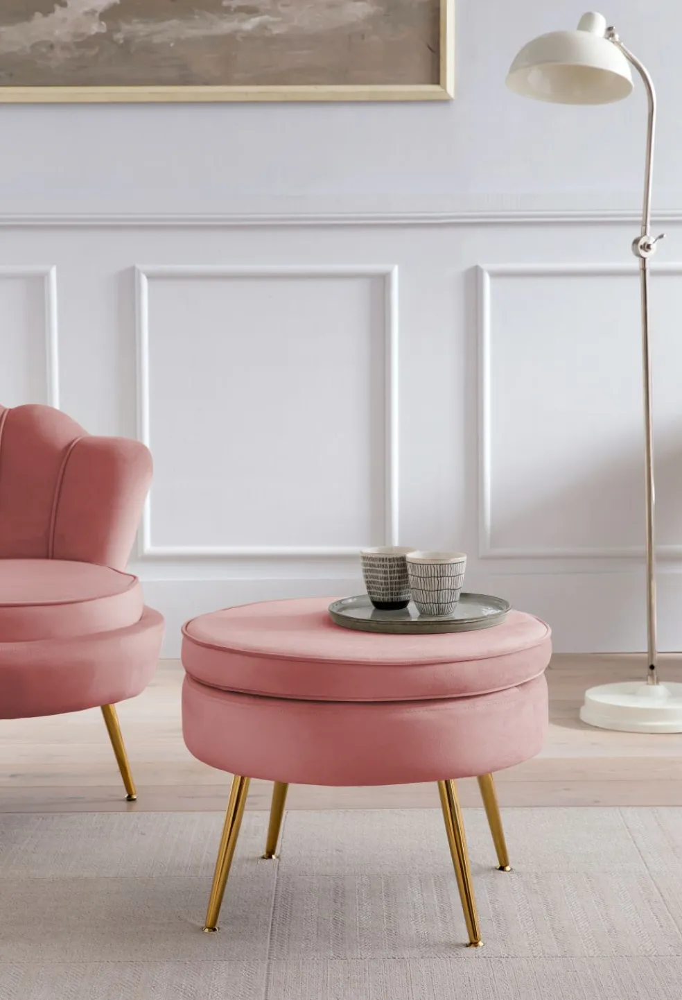 Revêtement : tissu velours ton rose 100 % polyester