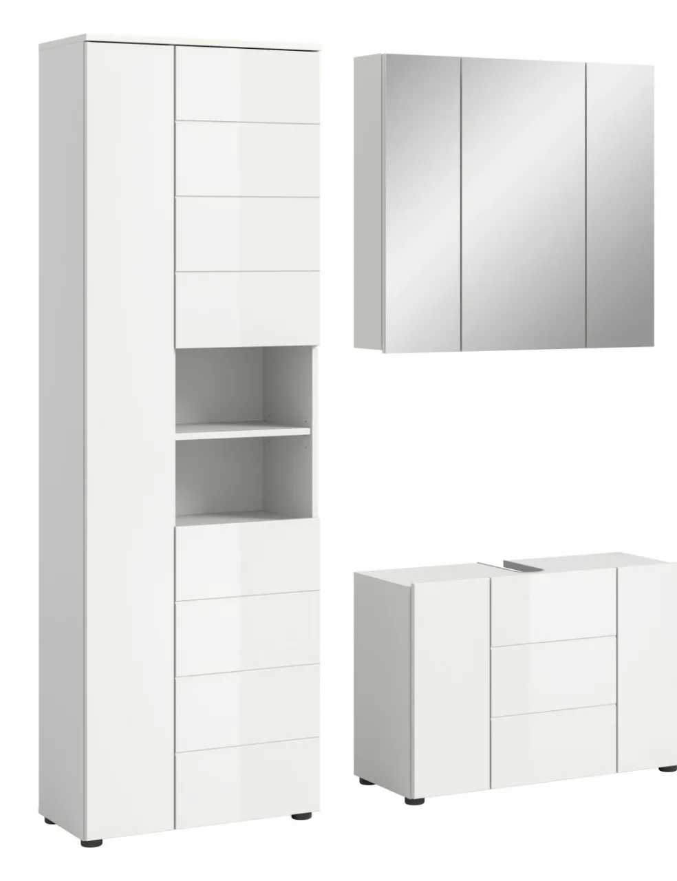 1 meuble sous lavabo avec 3 portes et 1 tablette amovible