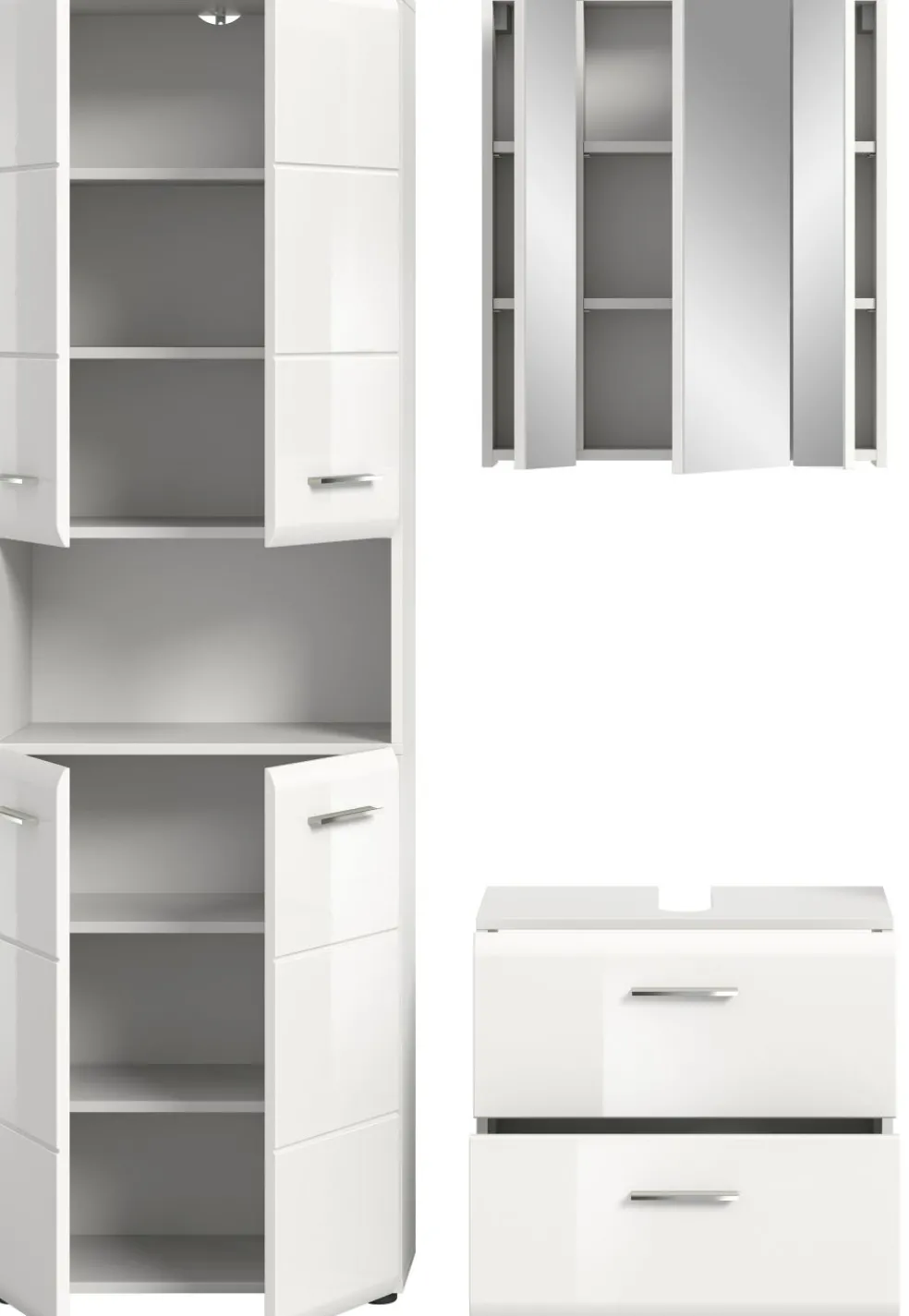 1 colonne de salle de bains avec 4 portes, 3 tablettes amovibles et 1 casier ouvert