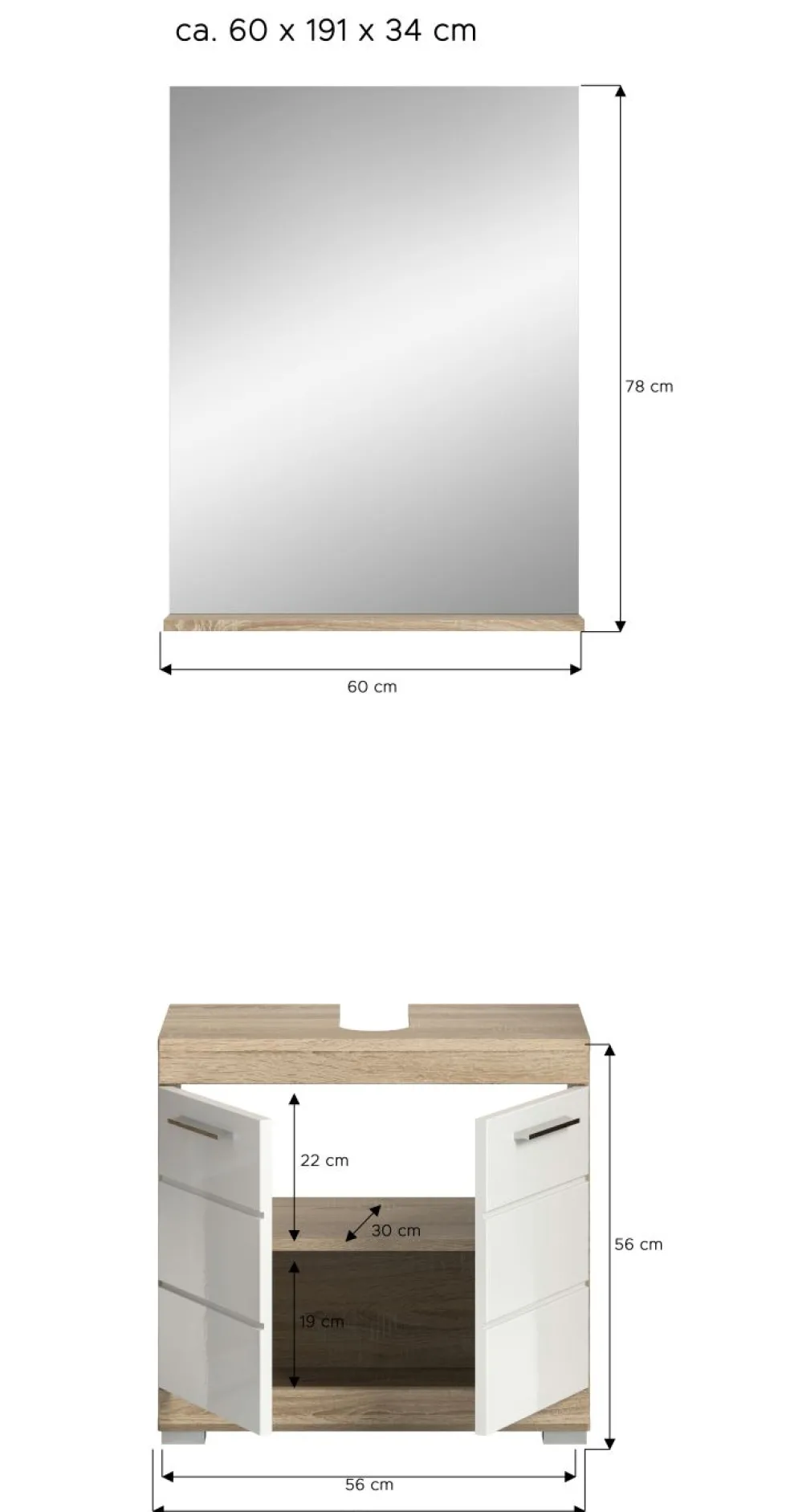 | Meuble sous lavabo | 60 | 56 | 34 |