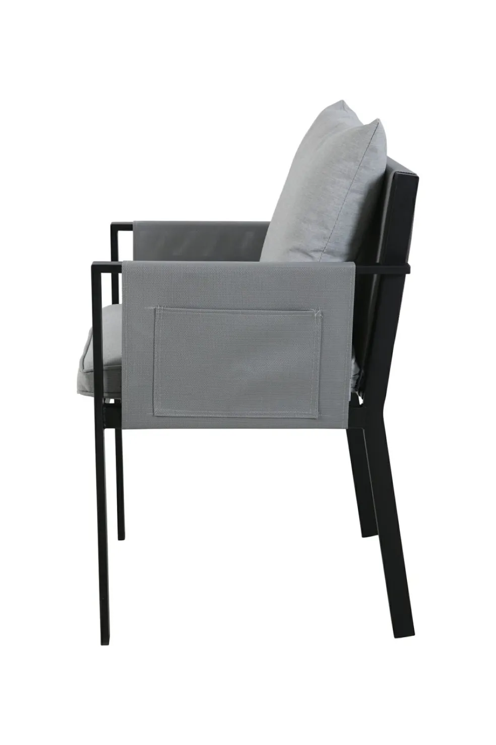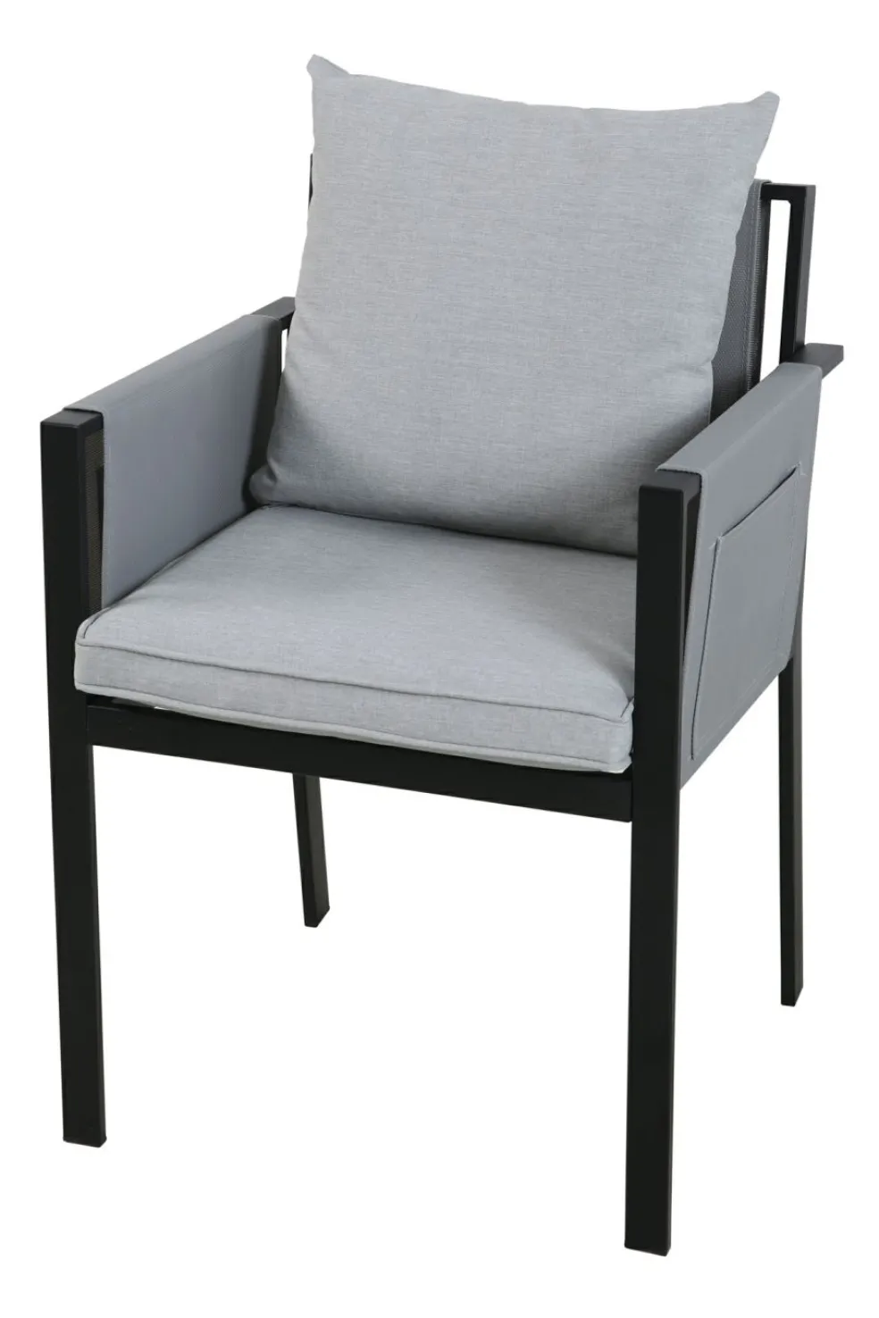 Revêtement des coussins d’assise : oléfine (polyéthylène ou polypropylène) ton gris