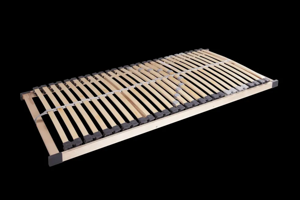 Cadre stable en bois multiplis avec 28 lattes souples dans capuchons particulièrement flexibles