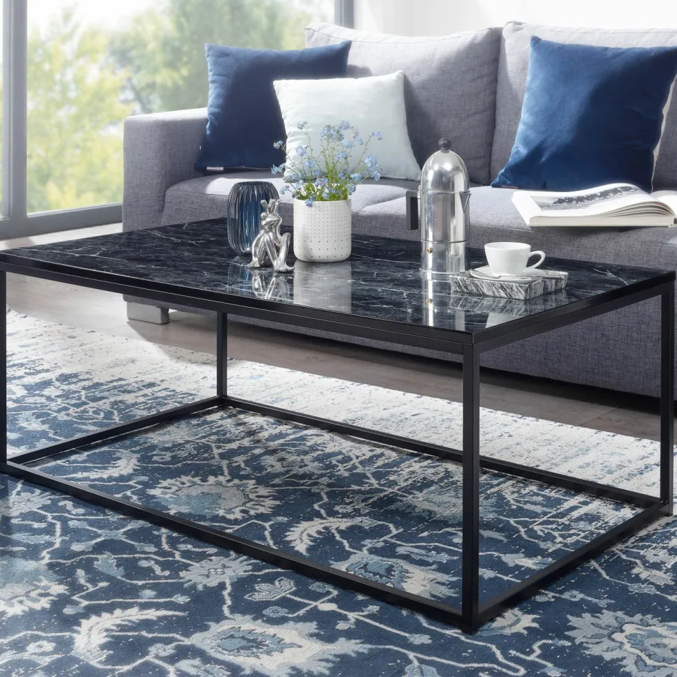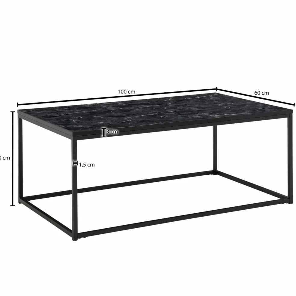 Plateau de table : MDF (panneau de fibres de bois de densité moyenne) aspect marbre noir