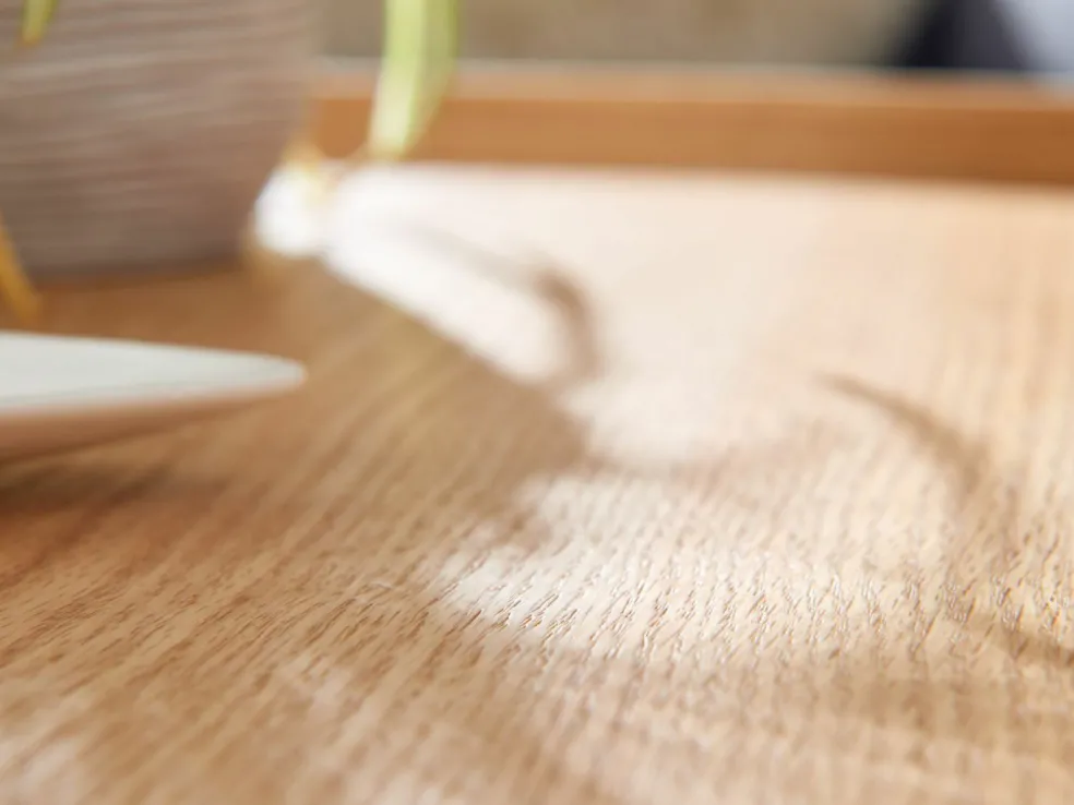 Anneau au niveau du plateau : bois de tulipier (Inde) avec placage chêne