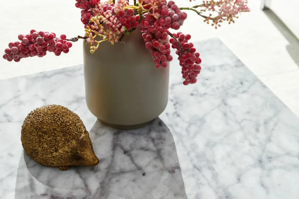 Table complète : MDF (panneau de fibres de bois de moyenne densité) pelliculé ton blanc (aspect marbre ultra brillant)