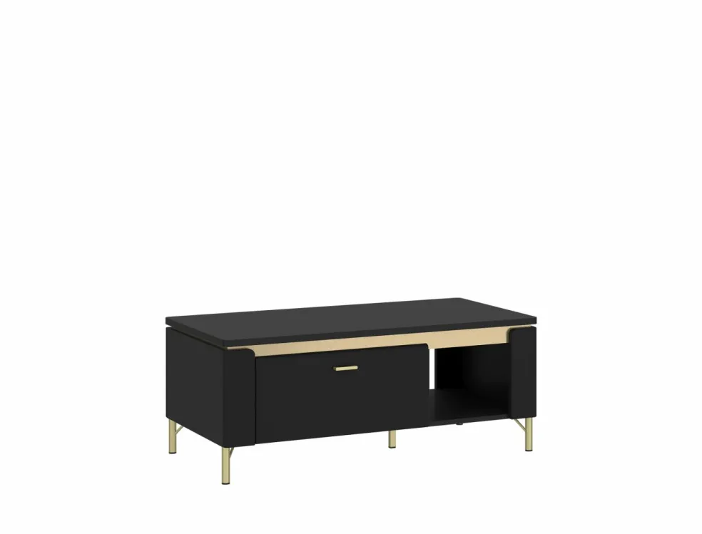 ton noir et contrastes ton doré, plateau en MDF, panneau de particules surfacé mélaminé (PPSM)