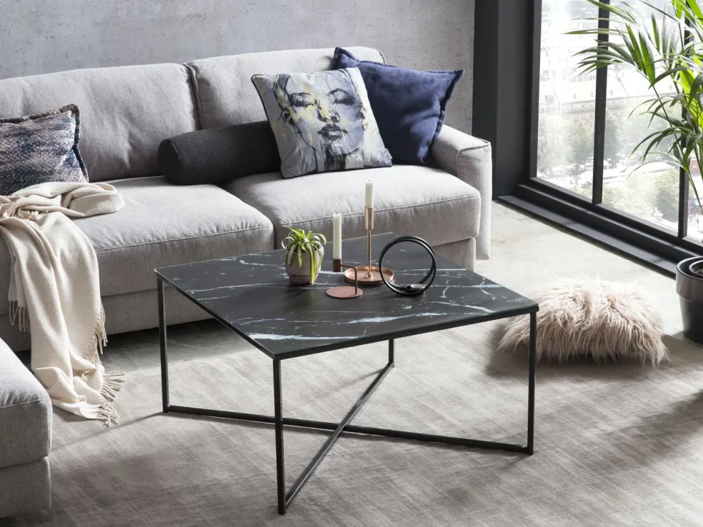 Plateau de table : plateau en verre avec film aspect marbre ton noir