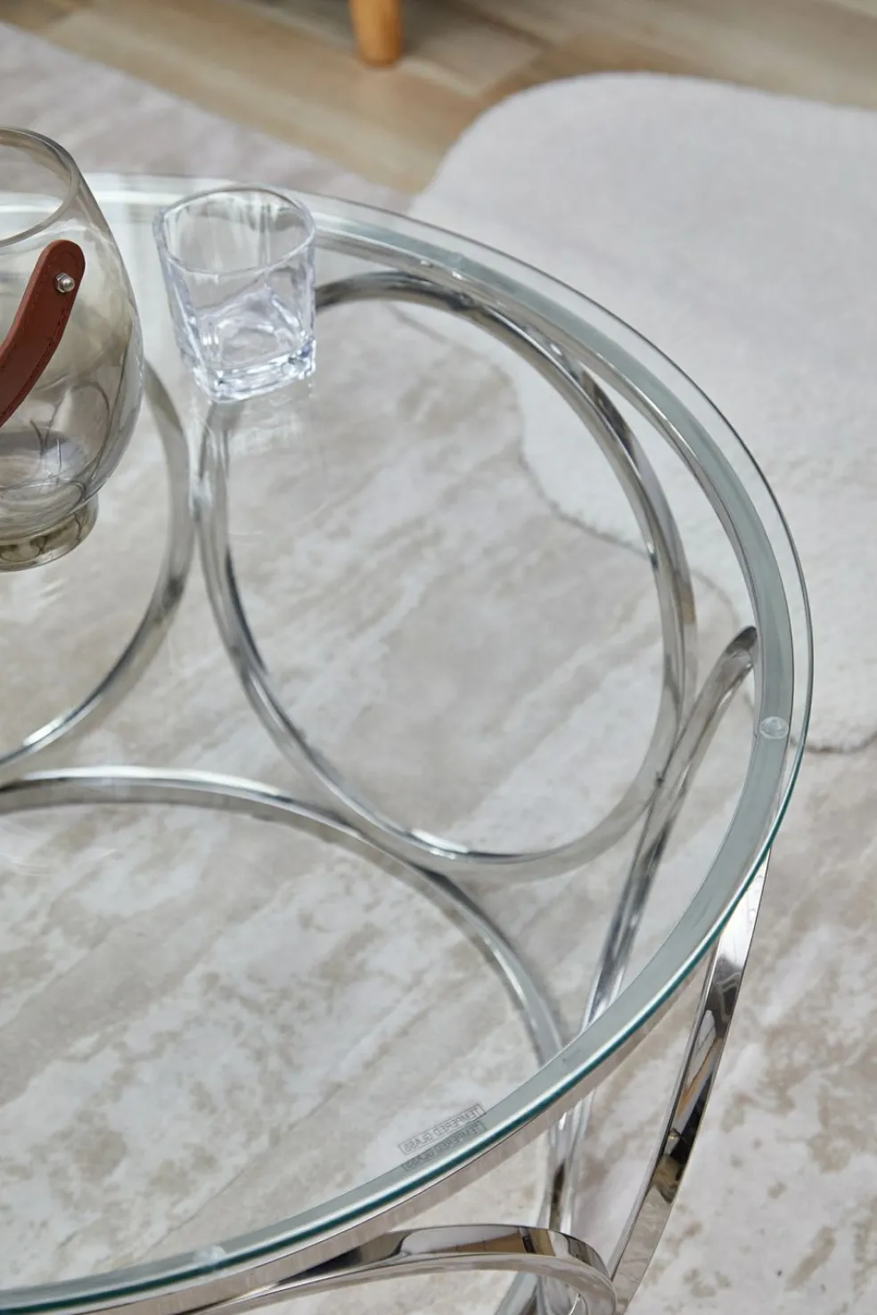 Piètement: acier inoxydable finition ton argent