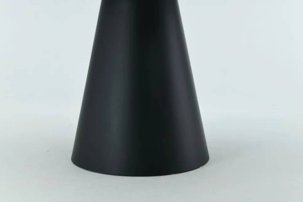 Piètement : métal finition époxy ton noir, en forme de colonne conique
