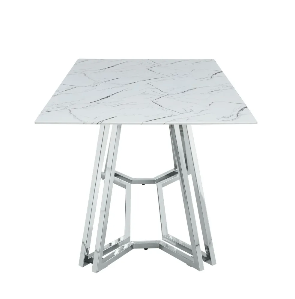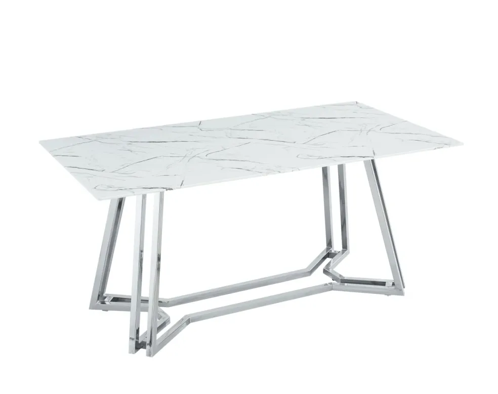 Plateau de table : verre durci (verre de sécurité) aspect marbre blanc