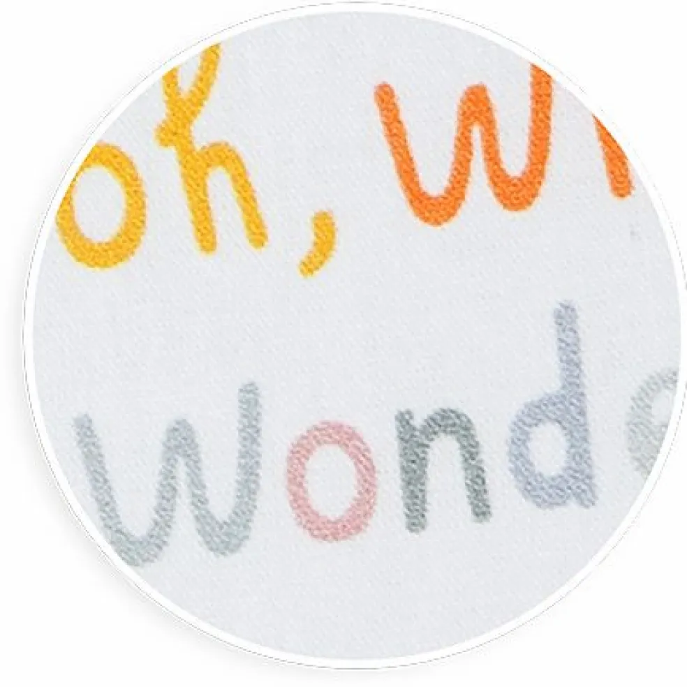 Le tapis moelleux en coton naturel avec garnissage en polyester s’attache aux barreaux du parc grâce aux nouettes.
