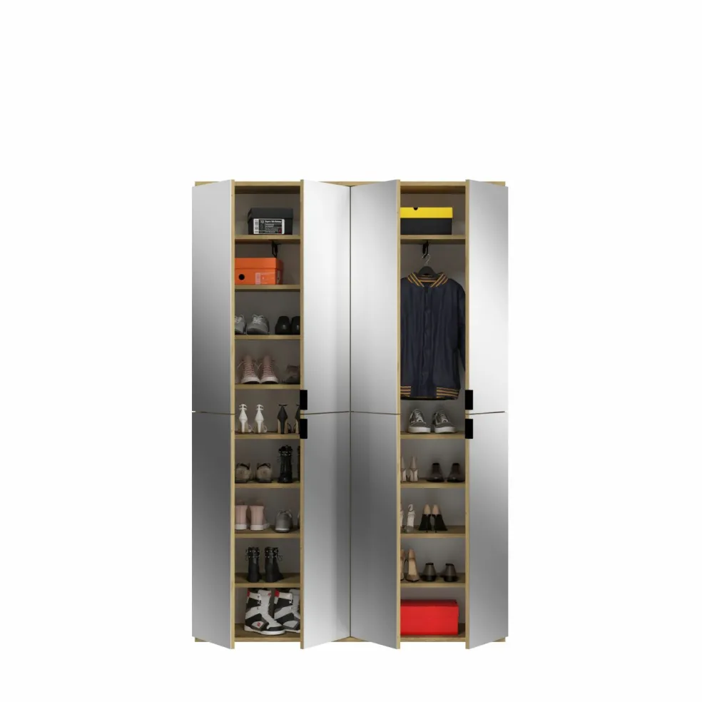 2 armoires d’entrée avec chacune 2 portes, 7 tablettes amovibles, 1 tablette fixe et 1 barre de penderie