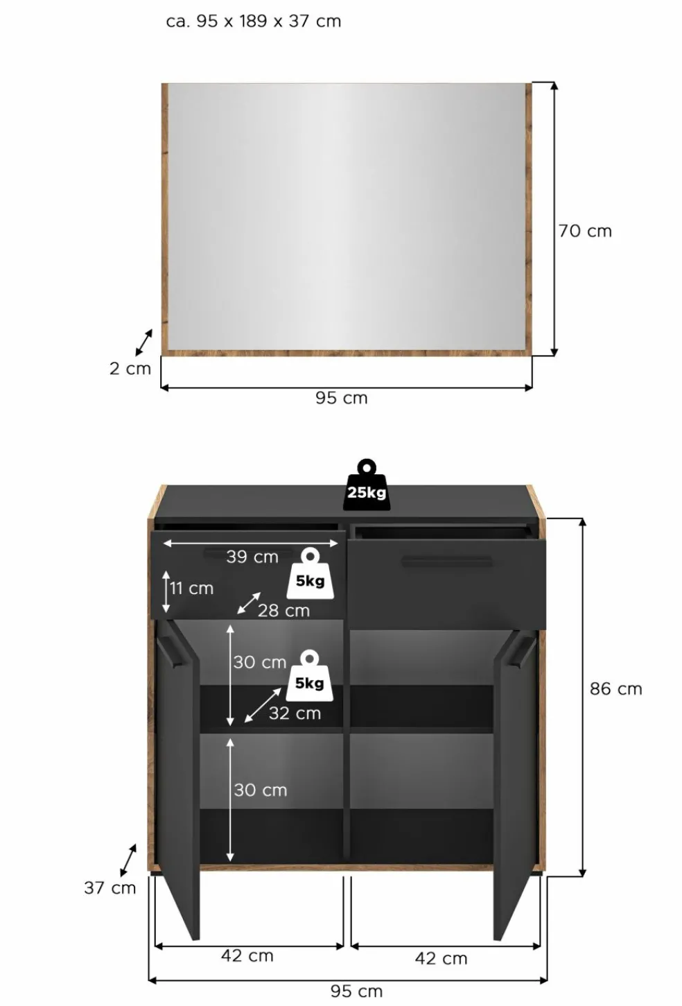 | Meuble à chaussures | 95 | 86 | 37 |