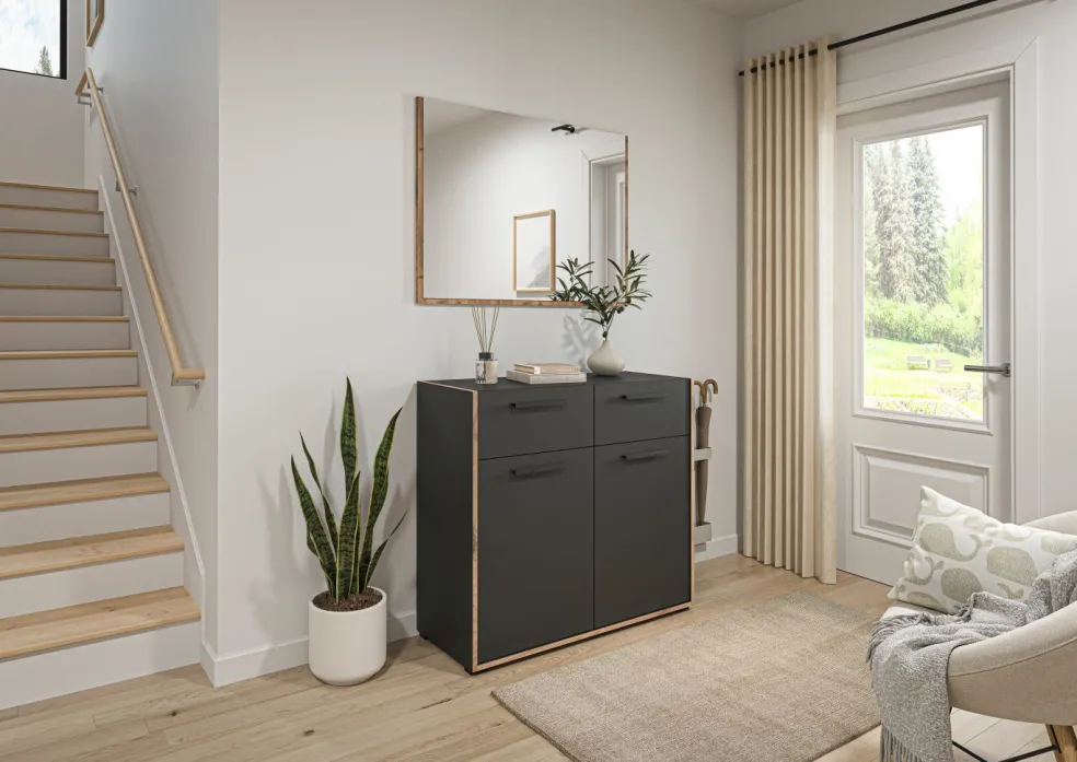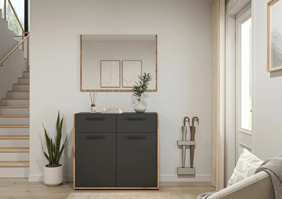 1 meuble à chaussures avec 2 tiroirs, 2 portes et 2 tablettes amovibles
