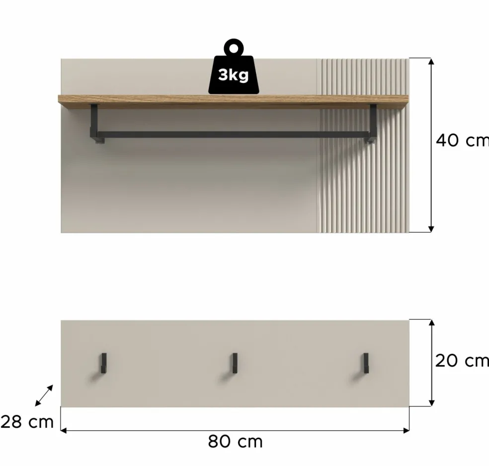 | Panneau portemanteau avec tablette porte-chapeaux et barre de penderie | 80 | 40 | 28 |