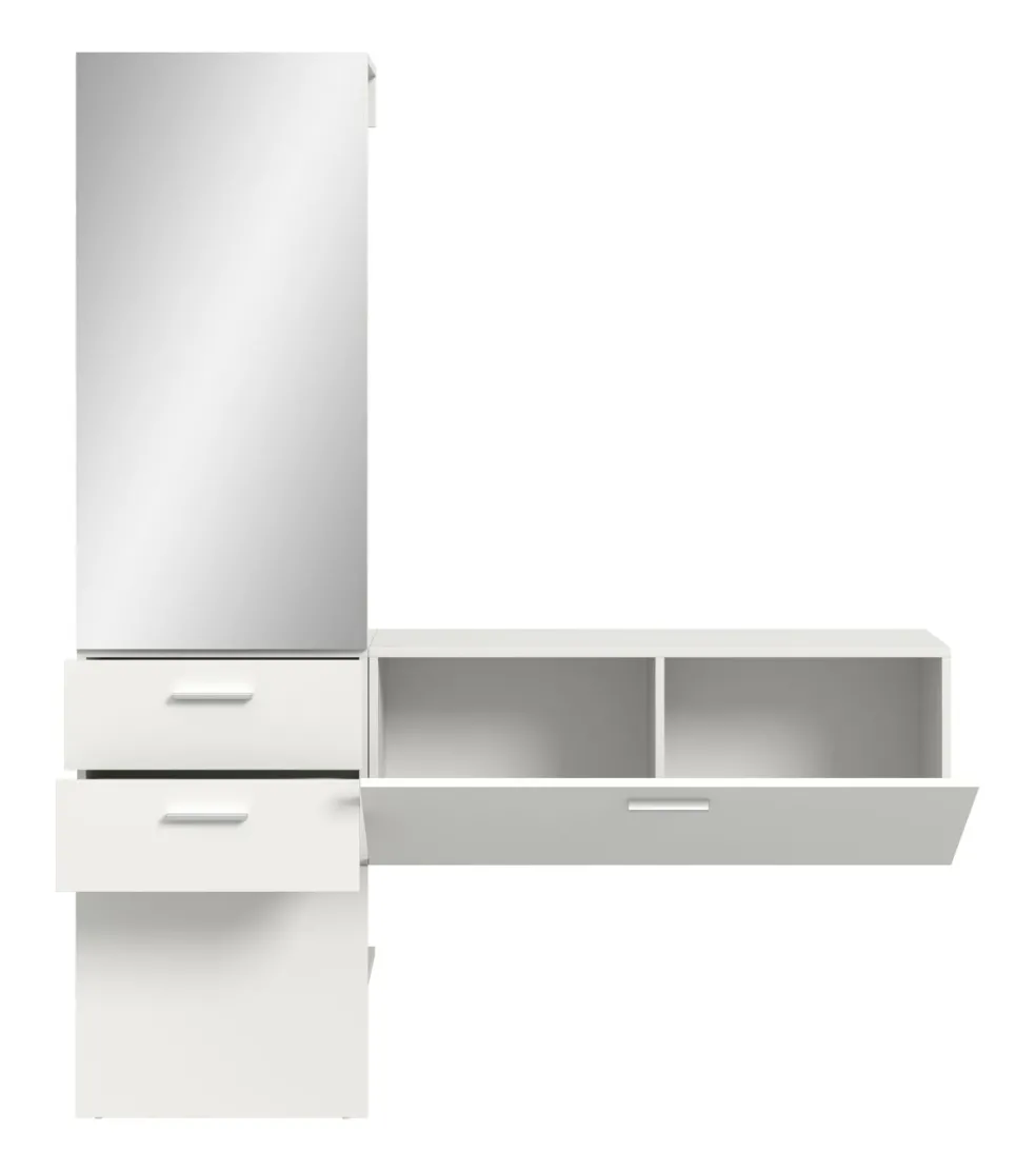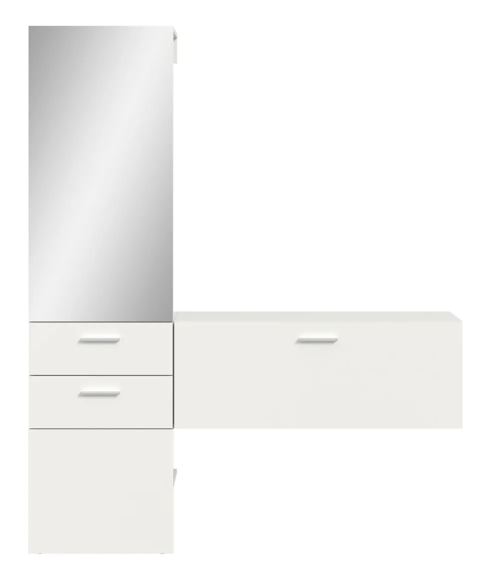 1 vestiaire compact avec 2 tiroirs, 1 miroir, 1 tablette et 1 barre de penderie