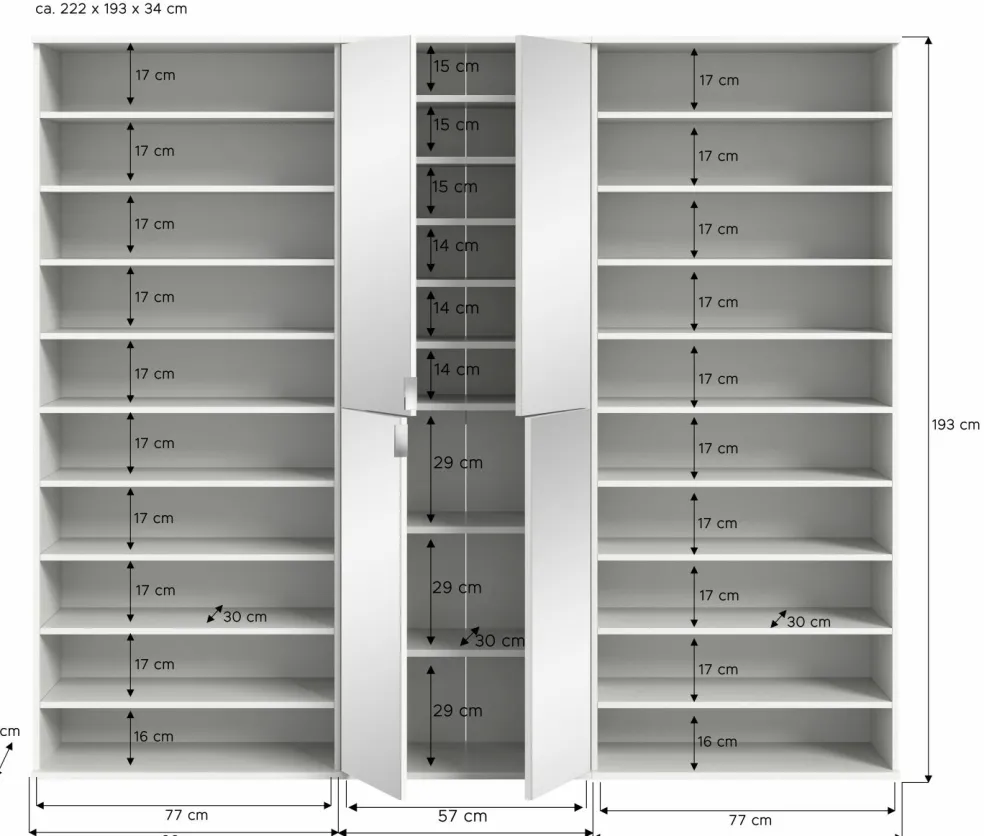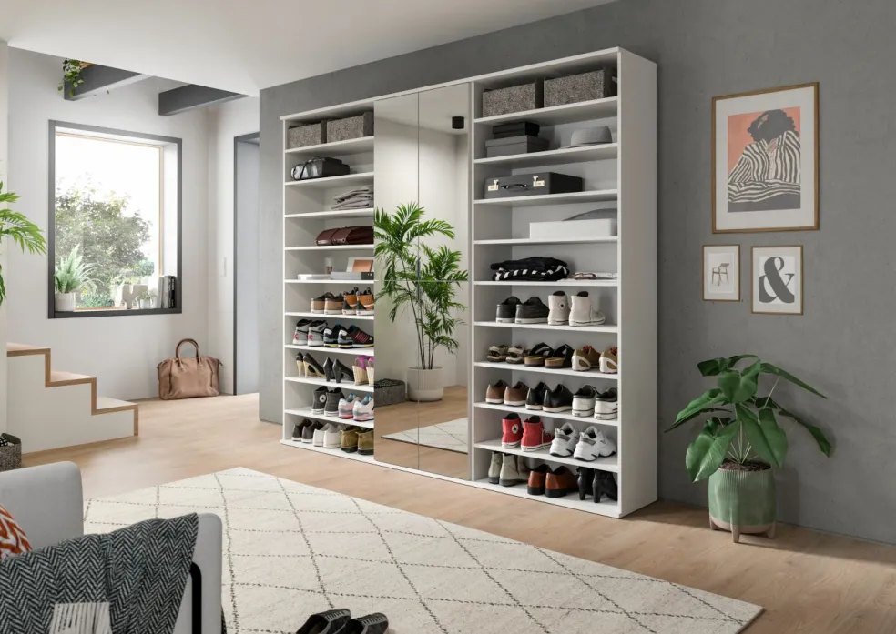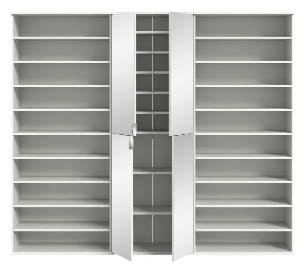 2 étagères à chaussures avec 8 tablettes amovibles et 1 tablette fixe chacune