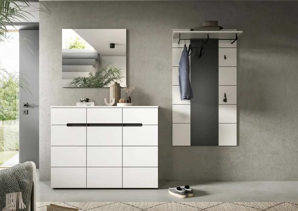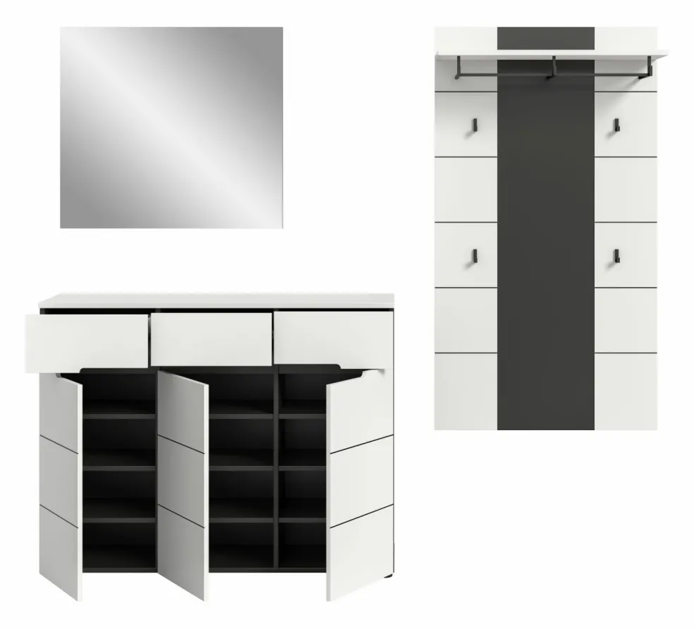 1 meuble à chaussures avec 3 portes, 3 tiroirs et 9 tablettes amovibles