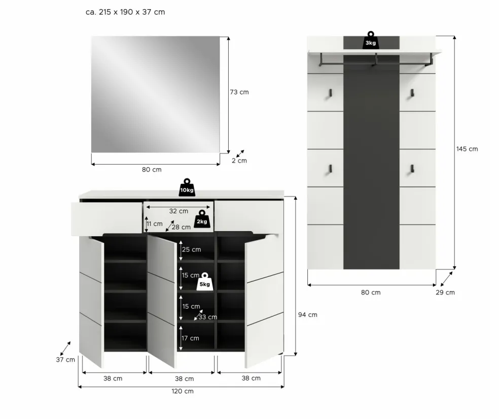 | Meuble à chaussures | 120 | 94 | 37 |