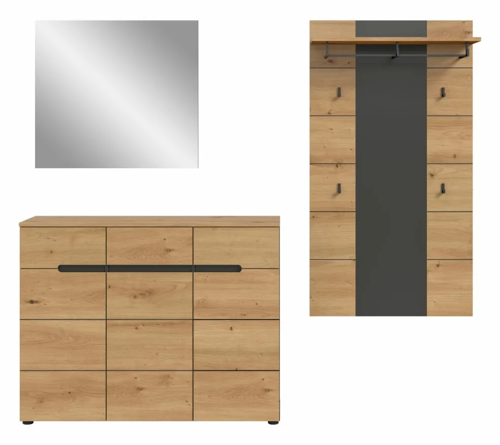 1 meuble à chaussures avec 3 portes, 3 tiroirs et 9 tablettes amovibles