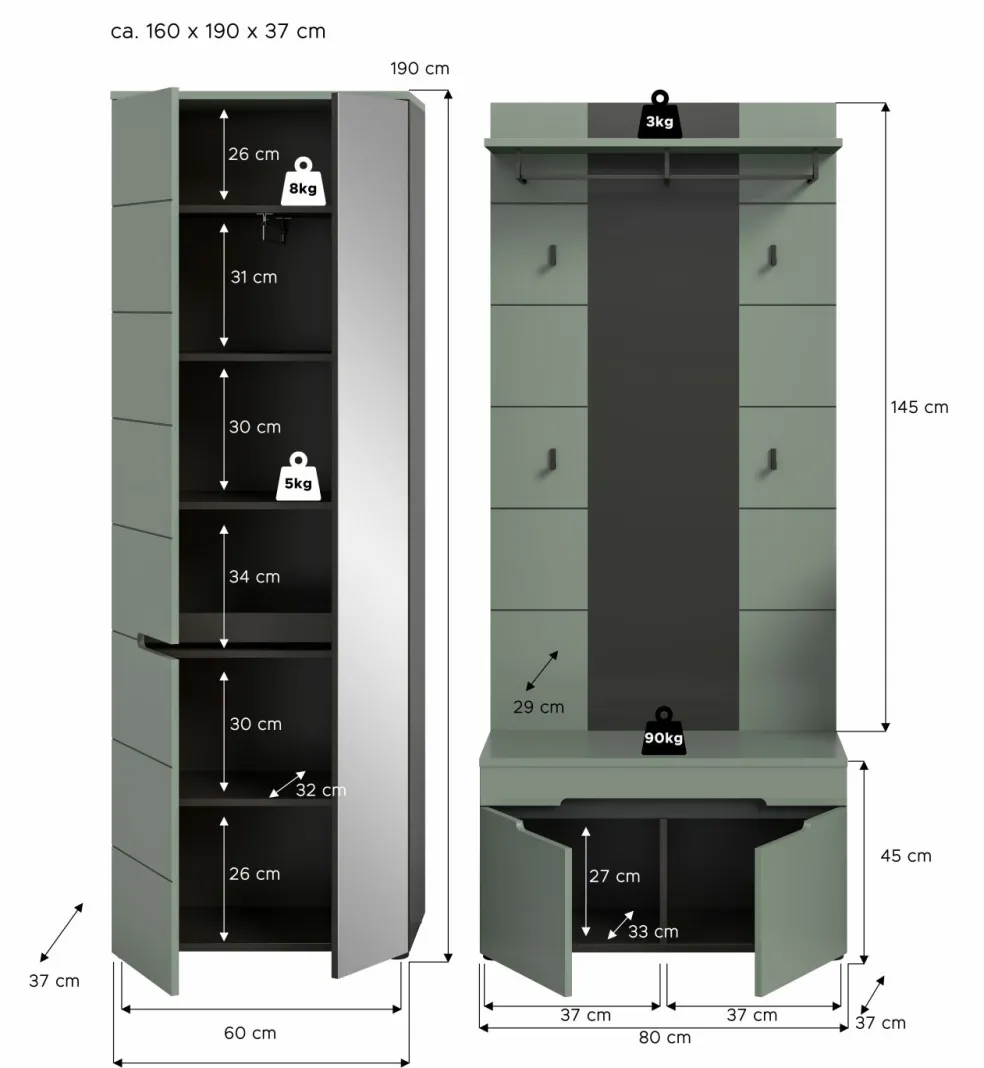| Armoire d’entrée | 65 | 190 | 37 |