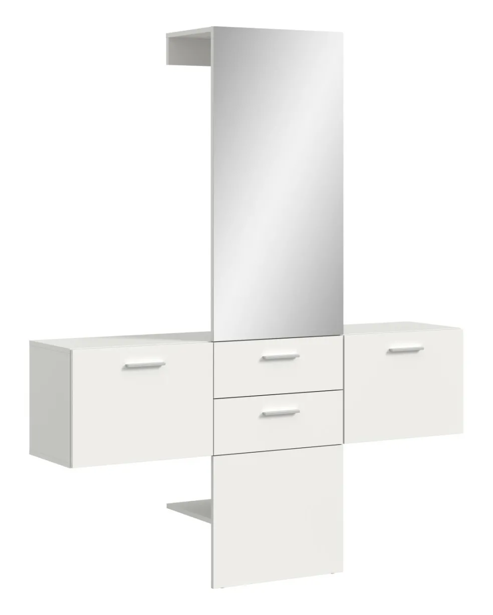 1 vestiaire compact avec 2 tiroirs, 1 miroir, 1 tablette et 1 barre de penderie