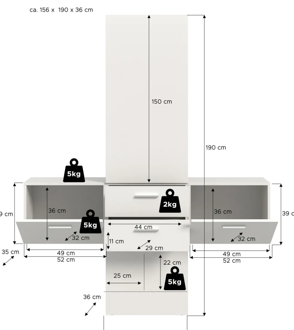 | Dimensions : | L/H/P env. 156/190/36 cm | ||