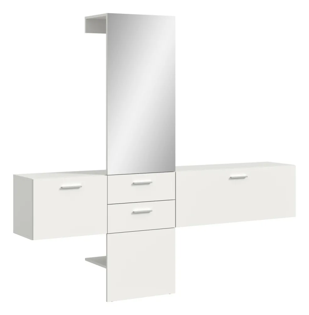 1 vestiaire compact avec 2 tiroirs, 1 miroir, 1 tablette et 1 barre de penderie