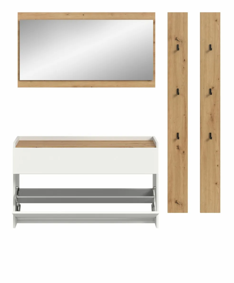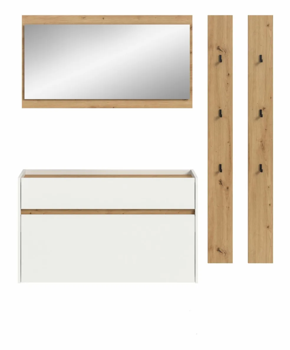 Façade: ton blanc et décor chêne Artisan / miroir
